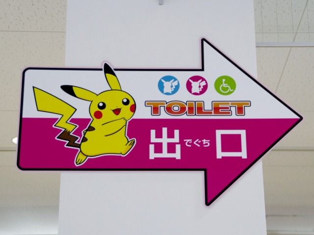 トレーニングエリア内の案内やトイレのマークなど細かいところまでポケモン仕様で、個人的に見どころだと思います。