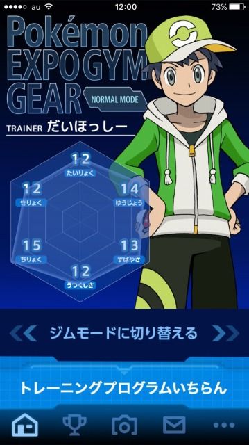 iOSやAndroid端末に「ポケモンEXPOジムギア」というアプリをインストールしてメンバーズカードを登録しておくと、連動してトレーングの状態を見ることができます。