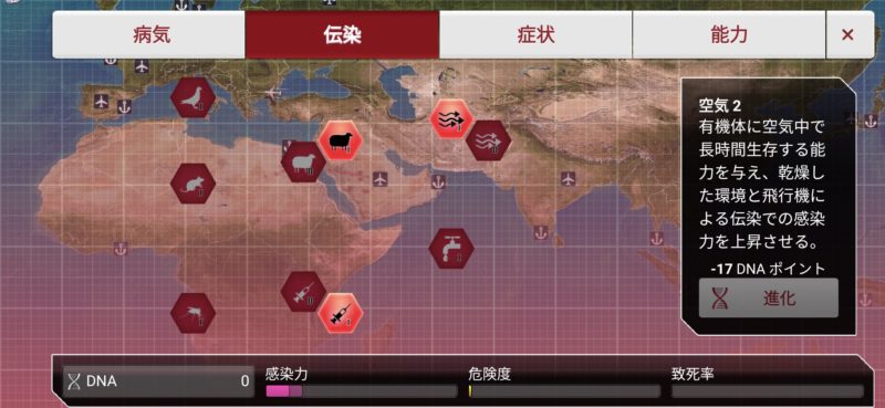 ポイントを使って病原体を進化させていくだけ。