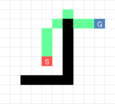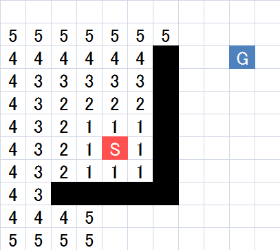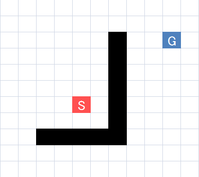 まず、上のように、S(スタート)とG(ゴール)が存在するマップがあります。
