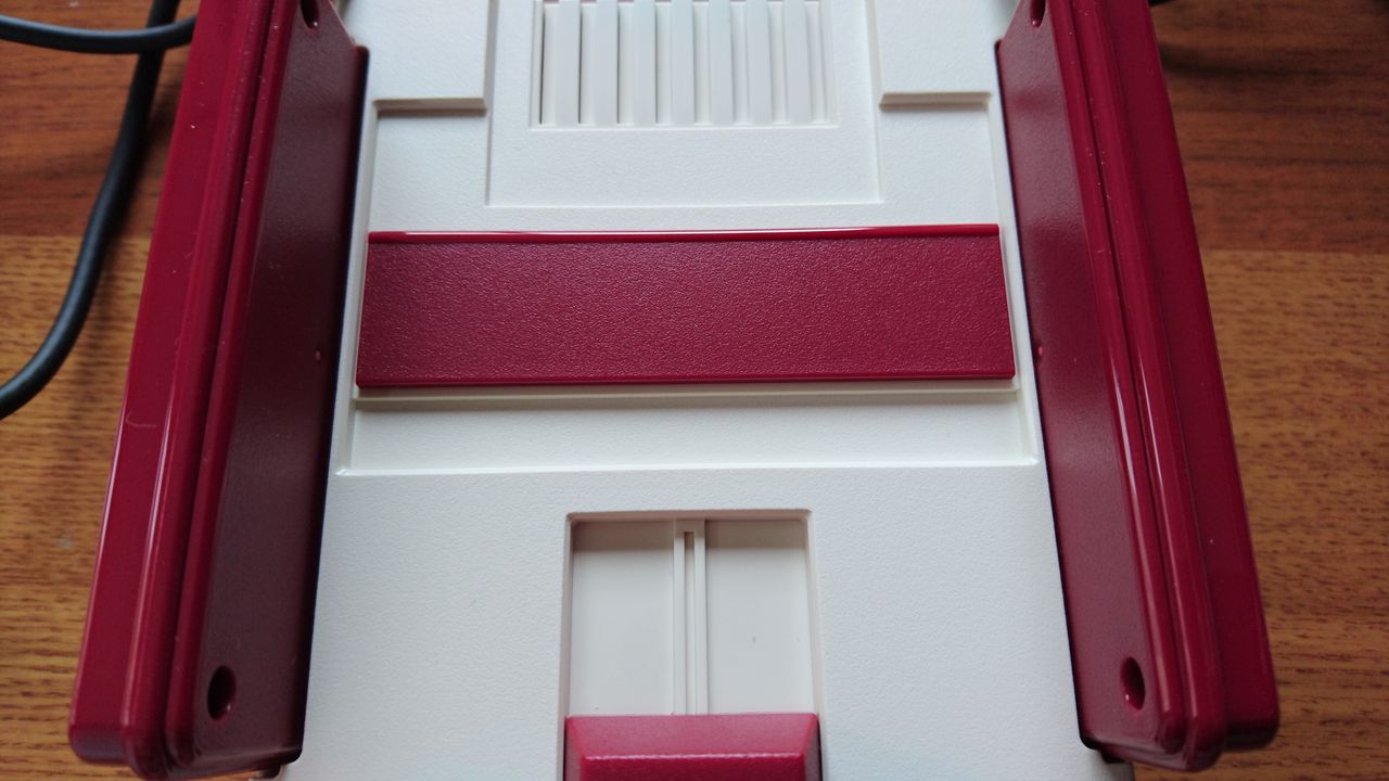 実際のファミコンと違う点としては、カセット差し込み口が開かない点、本体真ん中のカセットのロックを外すEJECTボタンが動かないところが目立った違い。