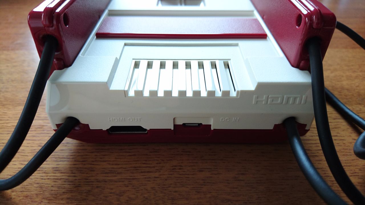 本体後部は当然ながら現代の配線仕様に。HDMI、ACケーブル差し込み口になっています。