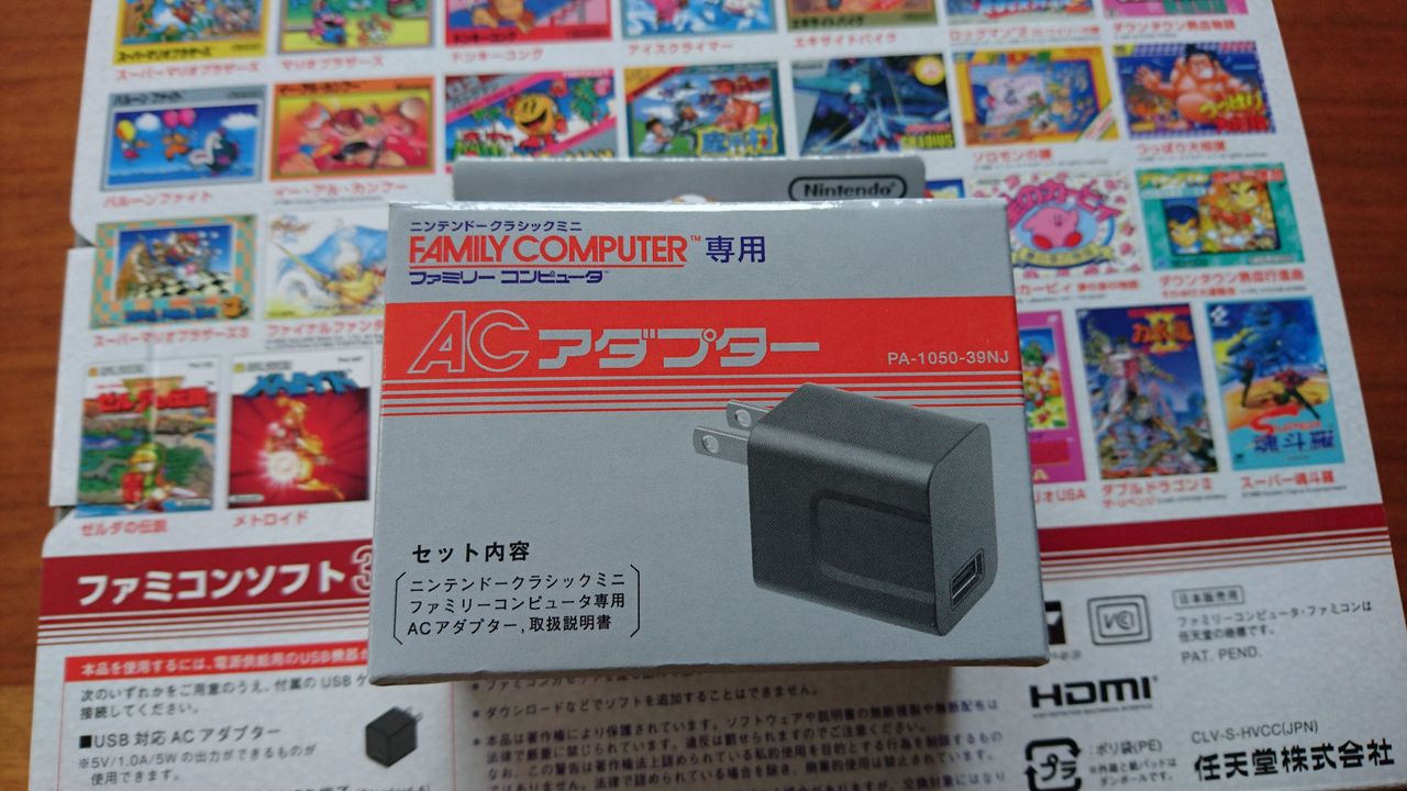 ACアダプターも一応純正のものが発売されています。パッケージも当時風のものに。
