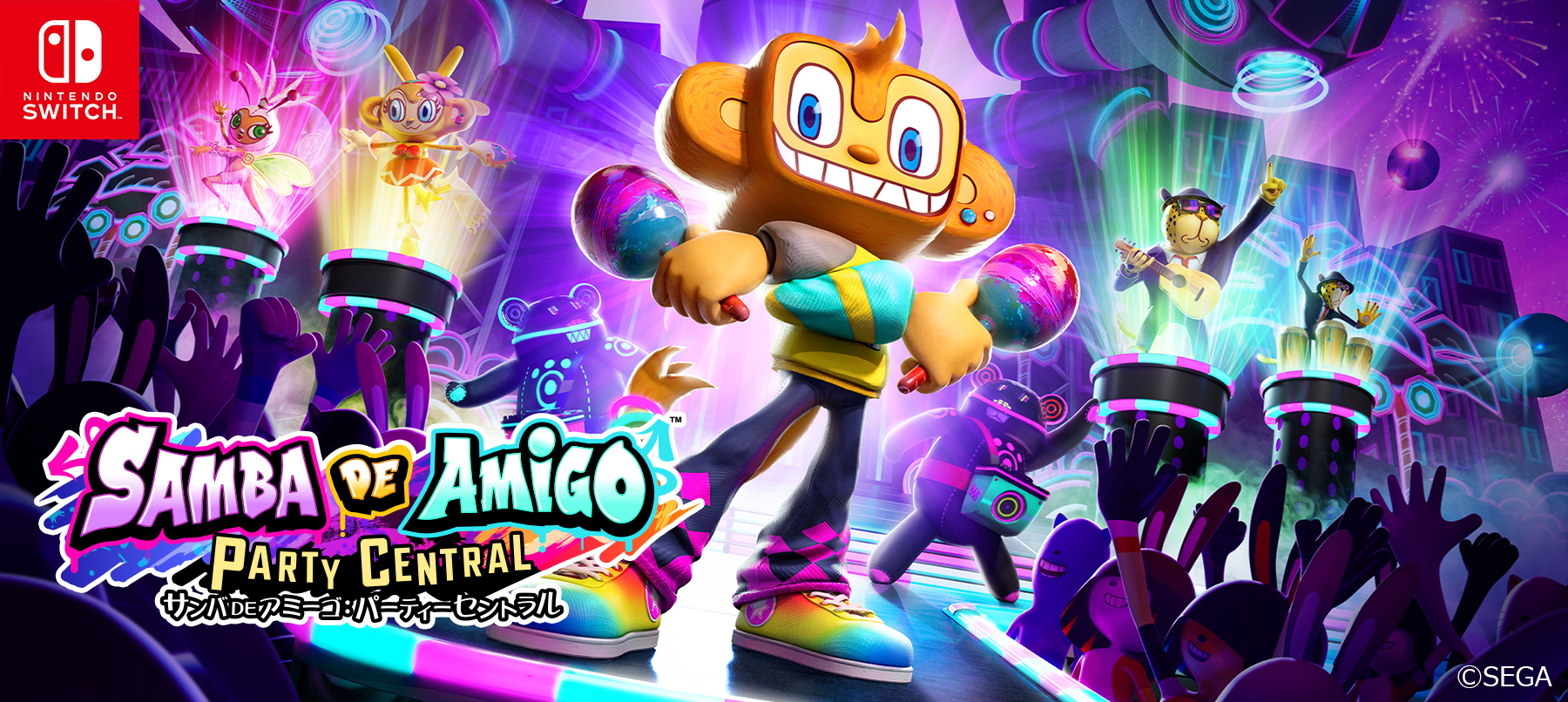 アーケードゲームとして1999年登場した初代「サンバDEアミーゴ」。スイッチならではのJoy-Conを使用した直感的な操作でマラカスを振って盛り上がろう。最大8人のプレイヤーで競うバトロワ形式の“ワールドパーティー”も楽しめます。