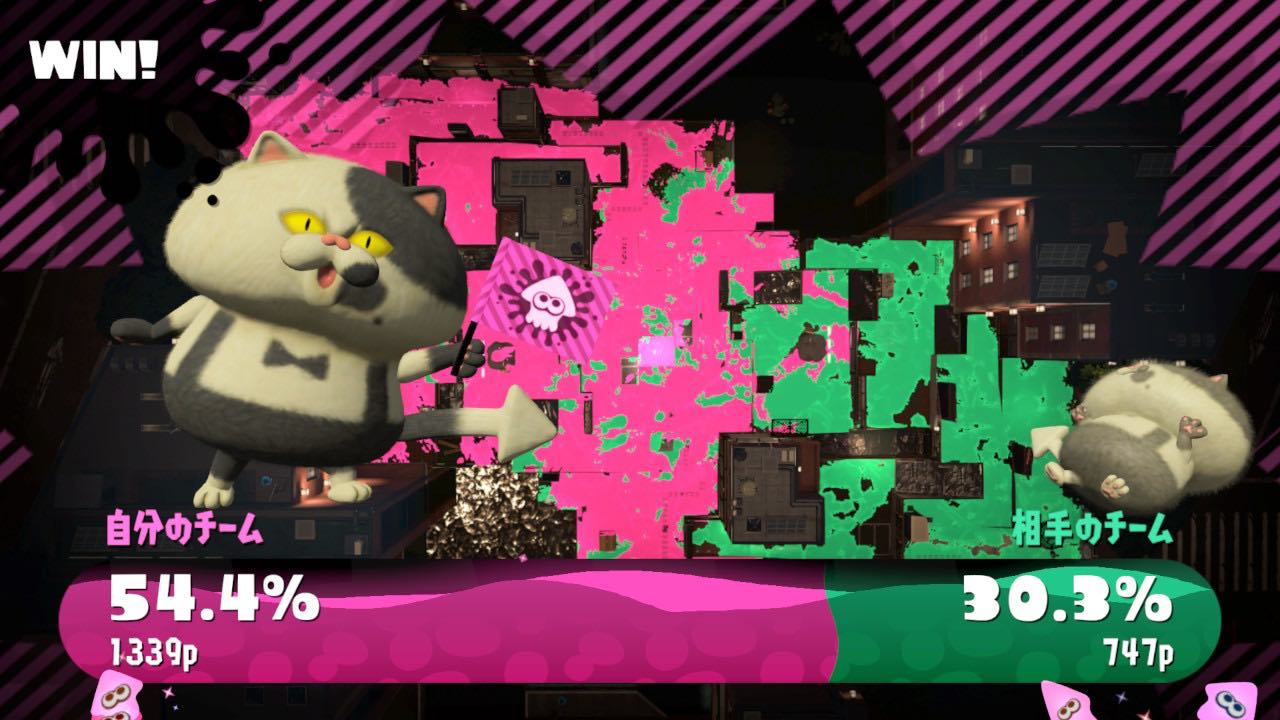 今作は(8/21現在)比較的狭いステージが多く、塗りやすいブキを使うと終盤からでも充分逆転できると思いました。実際、最初は押せ押せでも一気に逆転されるバトルが多いです。
