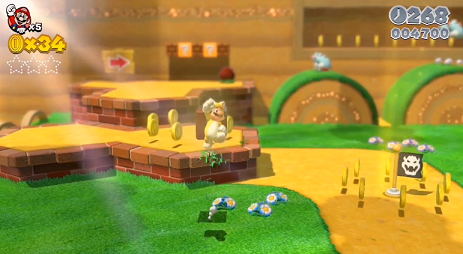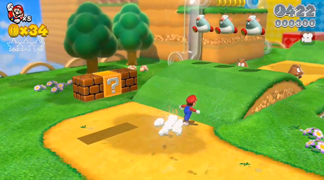 3DSで発売されたソフト「スーパーマリオ 3Dランド」と同じシステムを採用、時間制限がある中3Dのマップを探索しゴールポールを目指します。