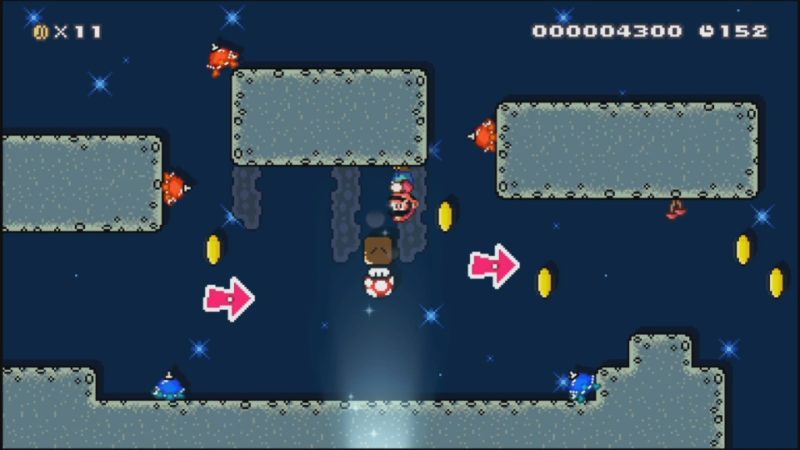 本作では、スーパーマリオブラザーズのようなコースを作ることができます。