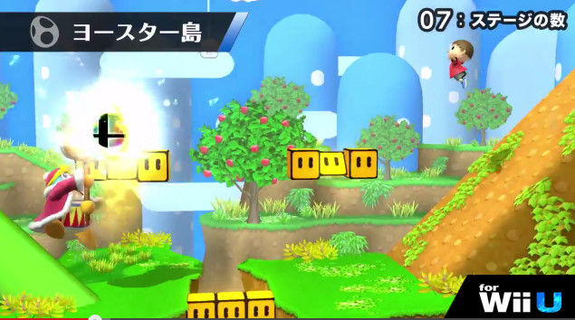 新参戦キャラクッパJr.参戦ムービー「未来の大王」(大魔王:クッパ、大王:デデデが公式設定のはずだが突っ込んではいけない)が公開。8人対戦を生かして7人衆+Jr.全員が一度に画面に登場しているその様子は感無量。