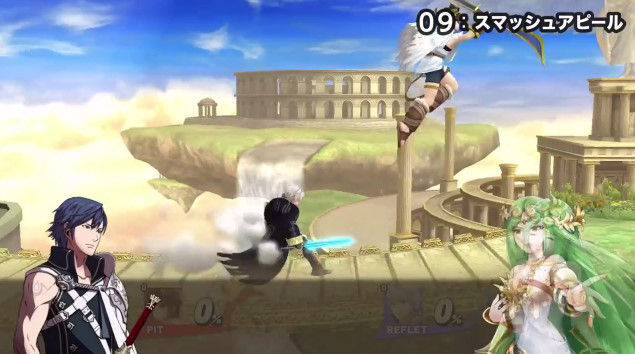 前作ではスネークやスターフォックスメンバーが行えたスマッシュアピール。今回はパルテナの鏡メンバーとスターフォックスメンバーに対応。ステージとキャラが条件を満たしている状態でアピール下を一瞬押すと発動。