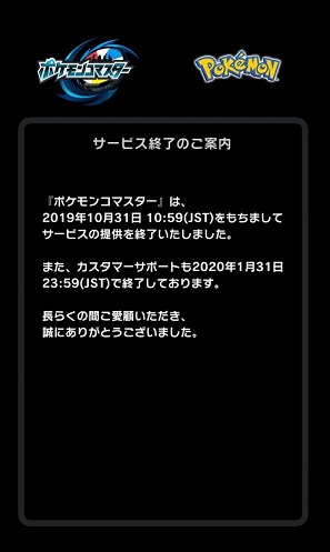 2020年7月22日にサービスを終了しているので、約1年で終わってしまったことに。ポケモンというブランドを背負っていながらこの短命…やっぱりスマホに落とし込むシリーズではなかったのではないかなと思います。スイッチで出して!