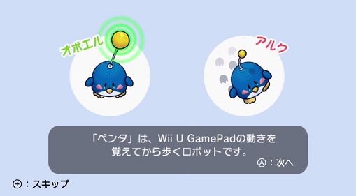 Aボタンを押している間、ペンタは音楽に合わせてリズムを刻みながら歩きます。向きを変える時はゲームパッドを傾けて!