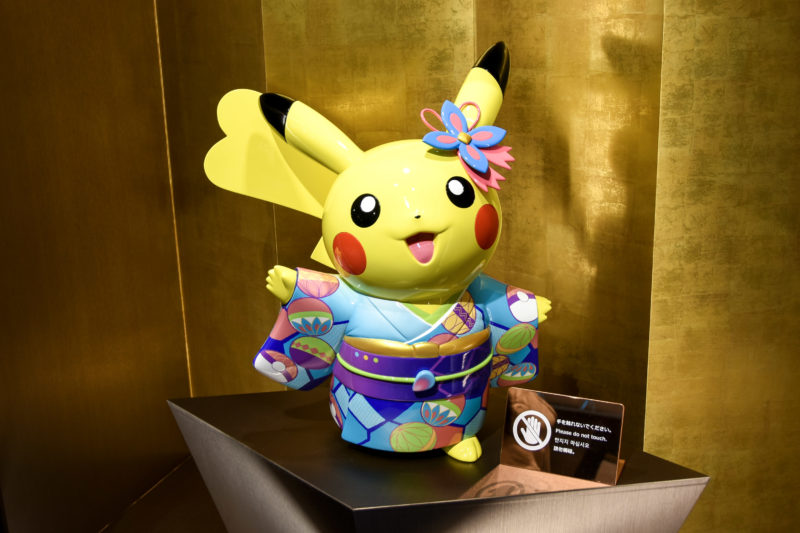 ミロカロスとピカチュウは見た目も優雅な佇まいです。カナザワピカチュウも加賀友禅を着ていて可愛いです。