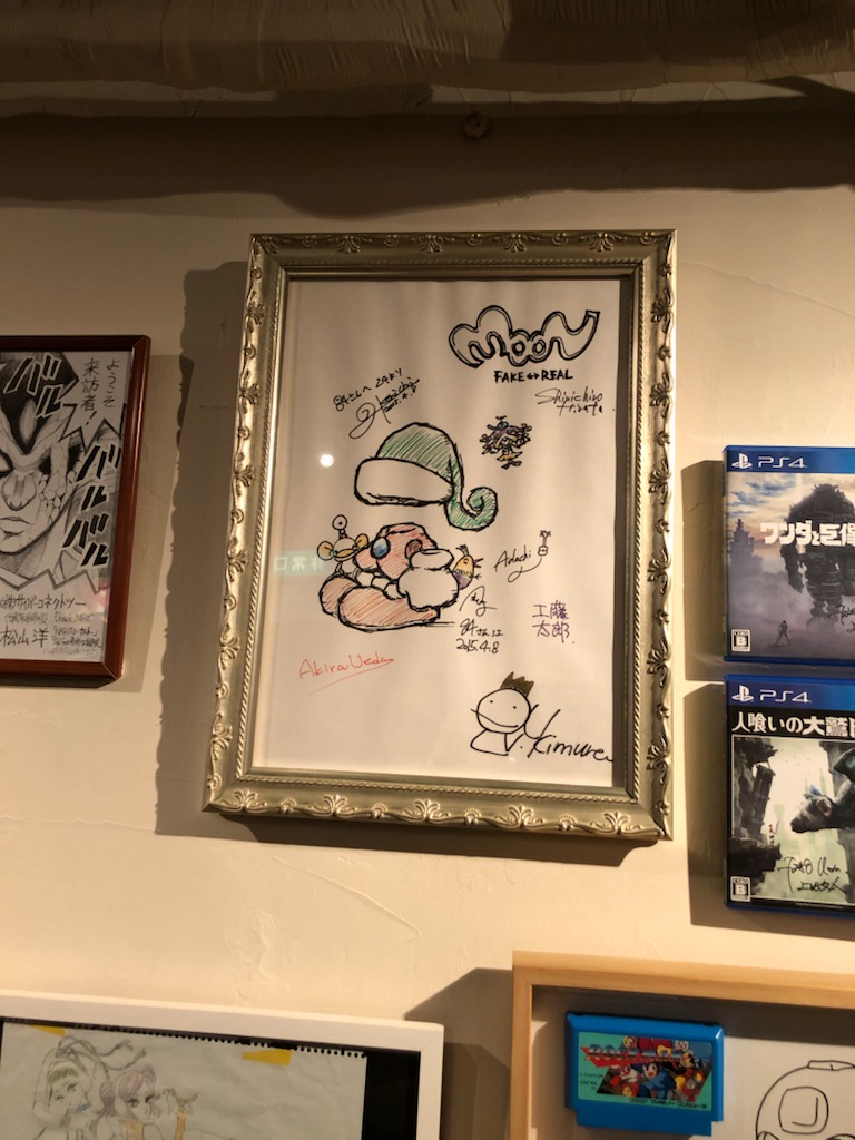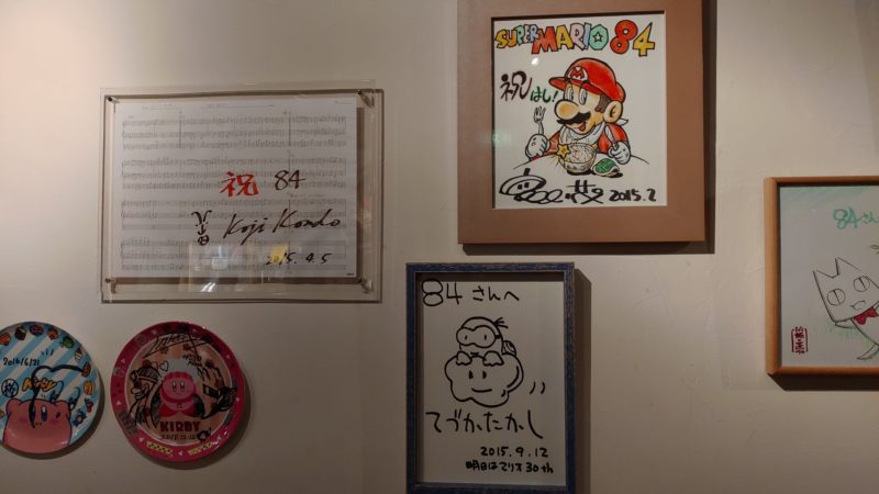 イッキさんが久々に来るから共に行くか…とかなり軽い気持ちで入った84ですが、そこまで広くはない店内に恐ろしいほどのゲーム関連グッズとサインが…!あんまり予習せず行ったことが申し訳なくなるような、中々濃い場所でした。ゲーム業界の有名人のサインは大体揃っていそうで恐ろしい空間でした。