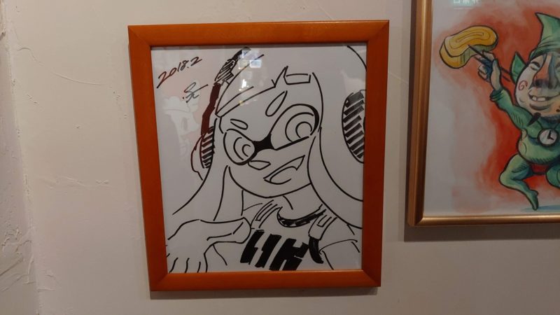 サインは分かりませんが、イラストは恐らくスプラトゥーンでアートワークディレクターを務めた井上精太さん。